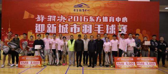 领奖台合影新浪体育讯 锋羽决”2016东方体育中心迎新城市羽毛球赛日前在上海东方体育中心圆满落幕。本届赛事由上海东方体育中心主办,上海市羽毛球协会、上海三杰体育赛事管理有限公司承办,上海红双喜股份有限公司全程助力支持。
